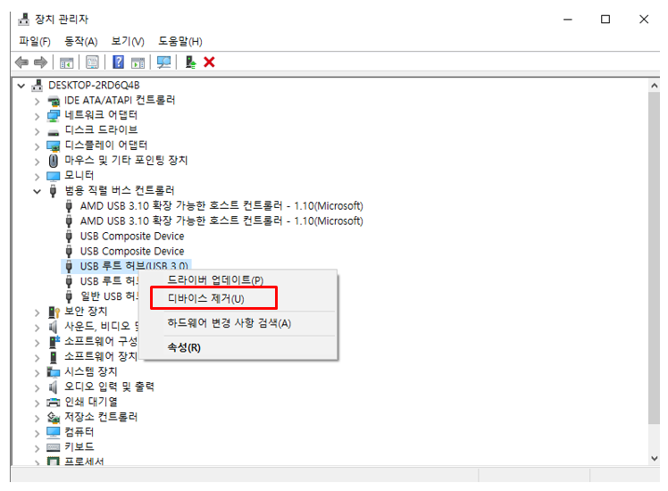 1. 다른 USB 포트 먼저 확인하기 (가장 간단)
