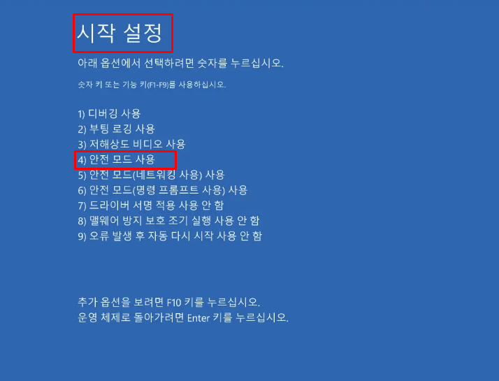→ 숫자 4번 (안전모드)