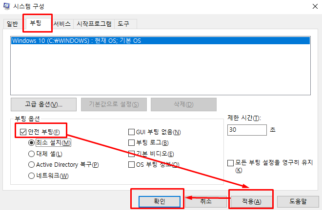 방법 3. msconfig로 안전모드 설정